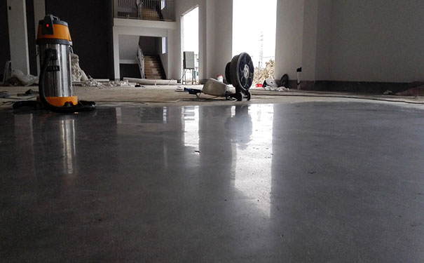 (2)環(huán)氧樹脂處理。用打磨機進行全面打磨(可以用清水進行濕處理后打磨),露出其清潔、新鮮的表面。用混凝土密封固化劑,均勻噴灑于打磨處理后的地面,保持地面濕潤時間4小時后,當表面變粘稠時用清水清洗整體表面,將清水全部清除,自然干燥24小時以上。待地面完全干燥后,進行地面拋光工作,首先使用環(huán)氧樹脂專業(yè)打磨機進行全面打磨(2-3遍),對整體基面進行初步拋光。用環(huán)氧樹脂專業(yè)打磨機進行全面精磨(2-3 遍),對整體基面進行全面拋光。