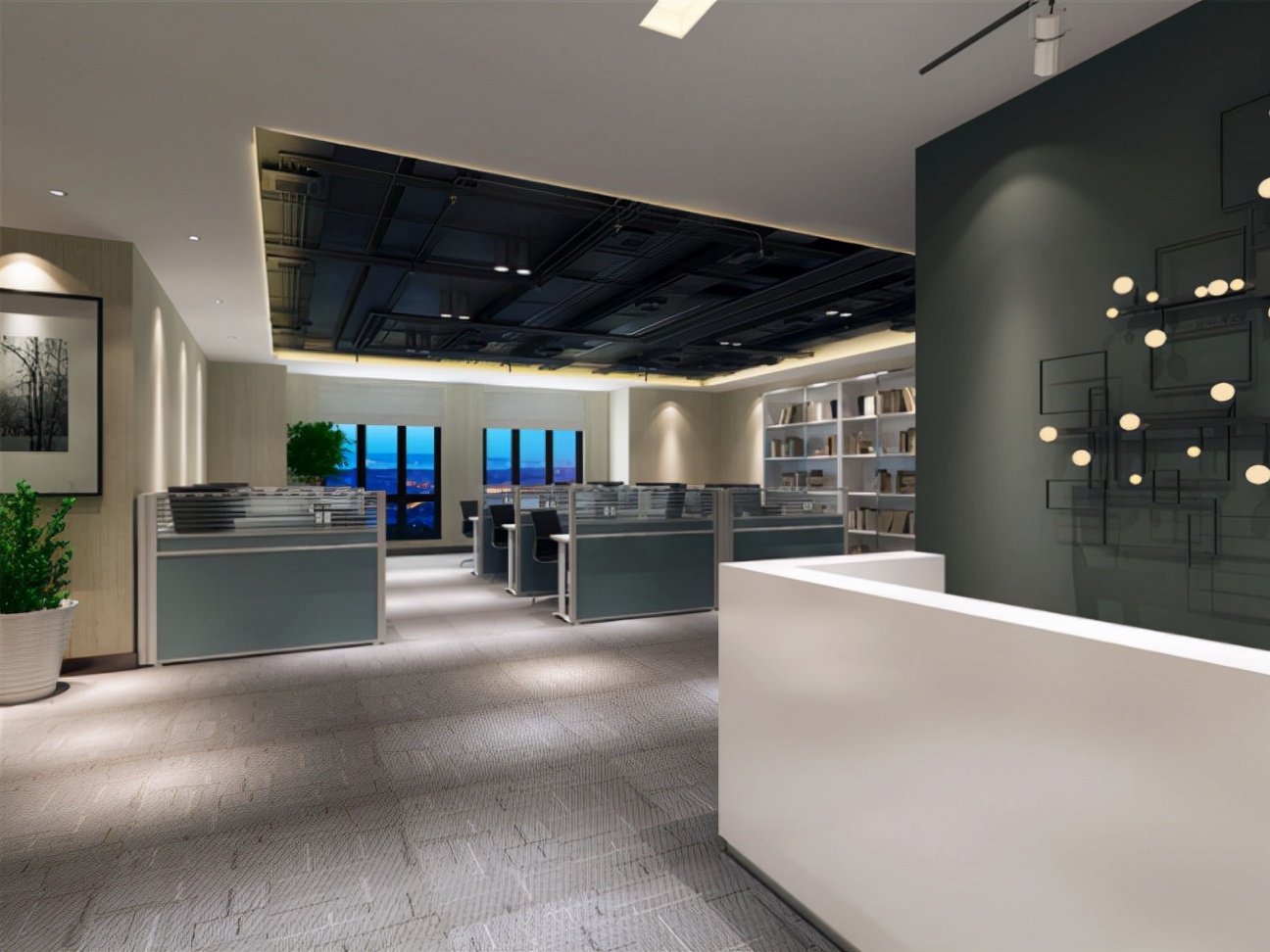 1.與自然光線合理配合。根據每個辦公室不同的朝向,在自然光弱的地方補充人工光線與其配合,這樣從視覺上,辦公室整體是非常亮堂的,而且不刺眼。